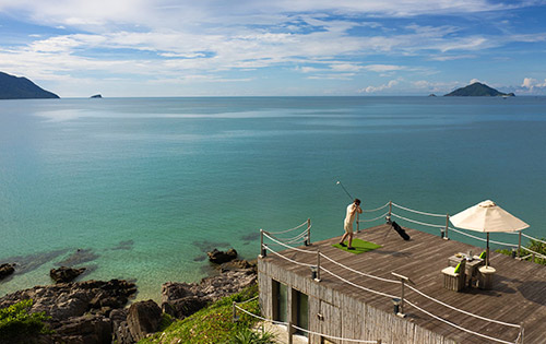 なんといっても魅力は目の前に広がるコンダオブルーのビーチ。 ビーチバレーやカヤックなどの無料アクティビティやボートトリップ、ピクニックなどの有料ツアーも豊富にそろえられています。 中でもシックスセンシズコンダオの名物が「フィッシュゴルフ」。 真っ青な海へ向けて思いっきりショットできる解放感はたまりません。 ゴルフボールはもちろんエコフレンドリー。 有機素材でできたボールは海へ落ちると溶けだし魚のエサになります。 だから名前は「フィッシュゴルフ」!